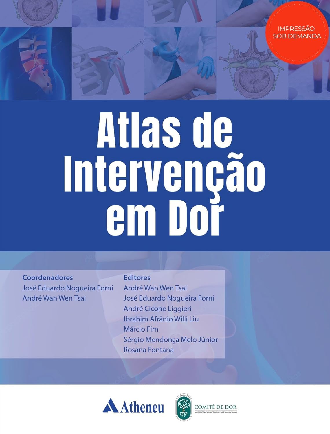 Atlas de Intervenção em Dor apresenta 2 coordenadores, 7 editores, 32 colaboradores, 10 capítulos, 264 páginas.